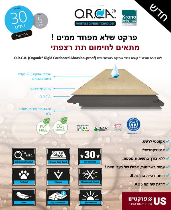 - פרקט אורגניק: היצרן אומר עליו שהוא "לא מפחד ממים"! הוא גם שקט כשצועדים עליו ועמיד לשריטות ולדהייה בשמש.